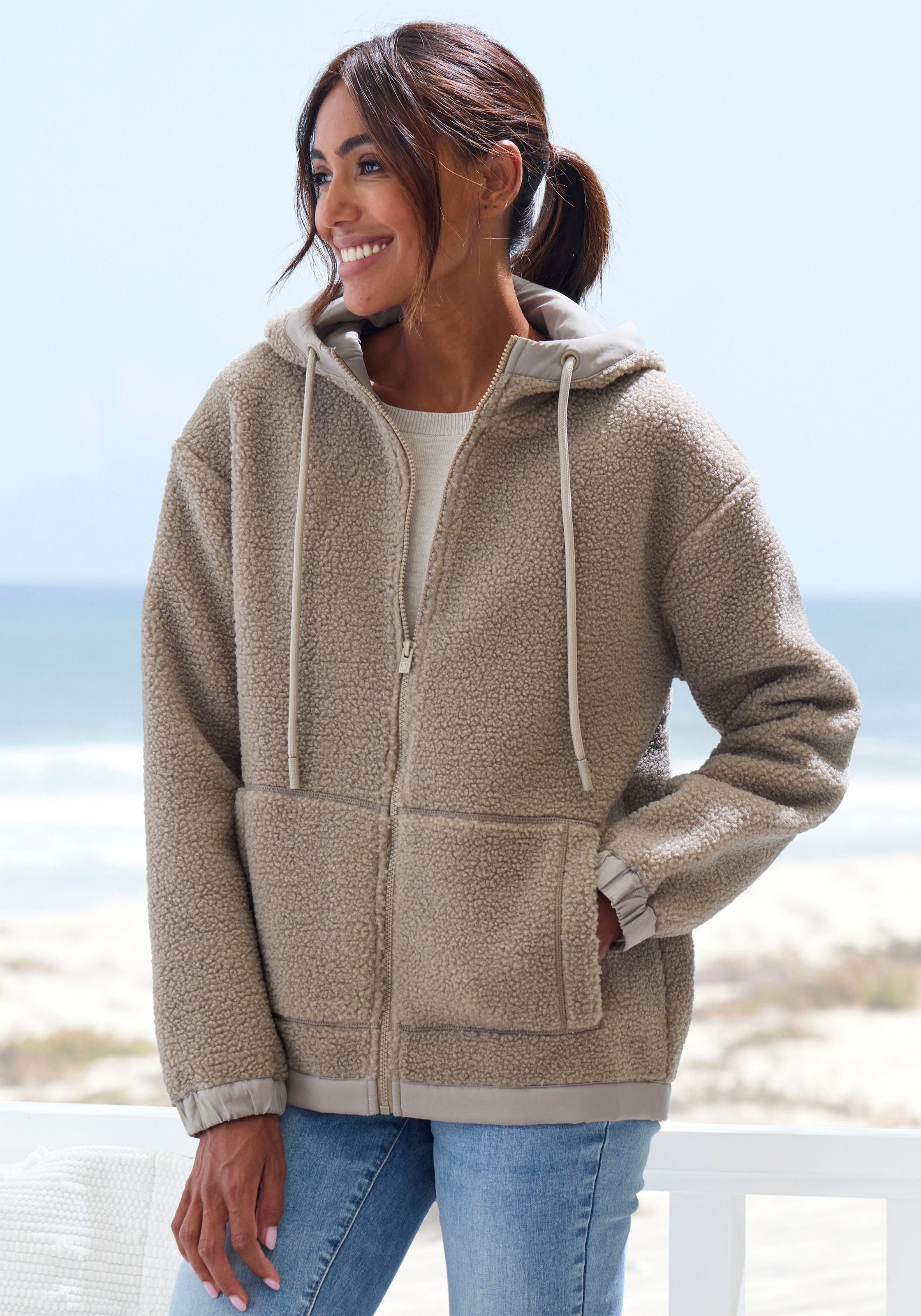 + Farben - Fleecejacke mit Kapuze Übergangsjacke aus Teddy-Fleece mit verstellbarer KapuzeElbsandAktueller Preisab 99,99 €