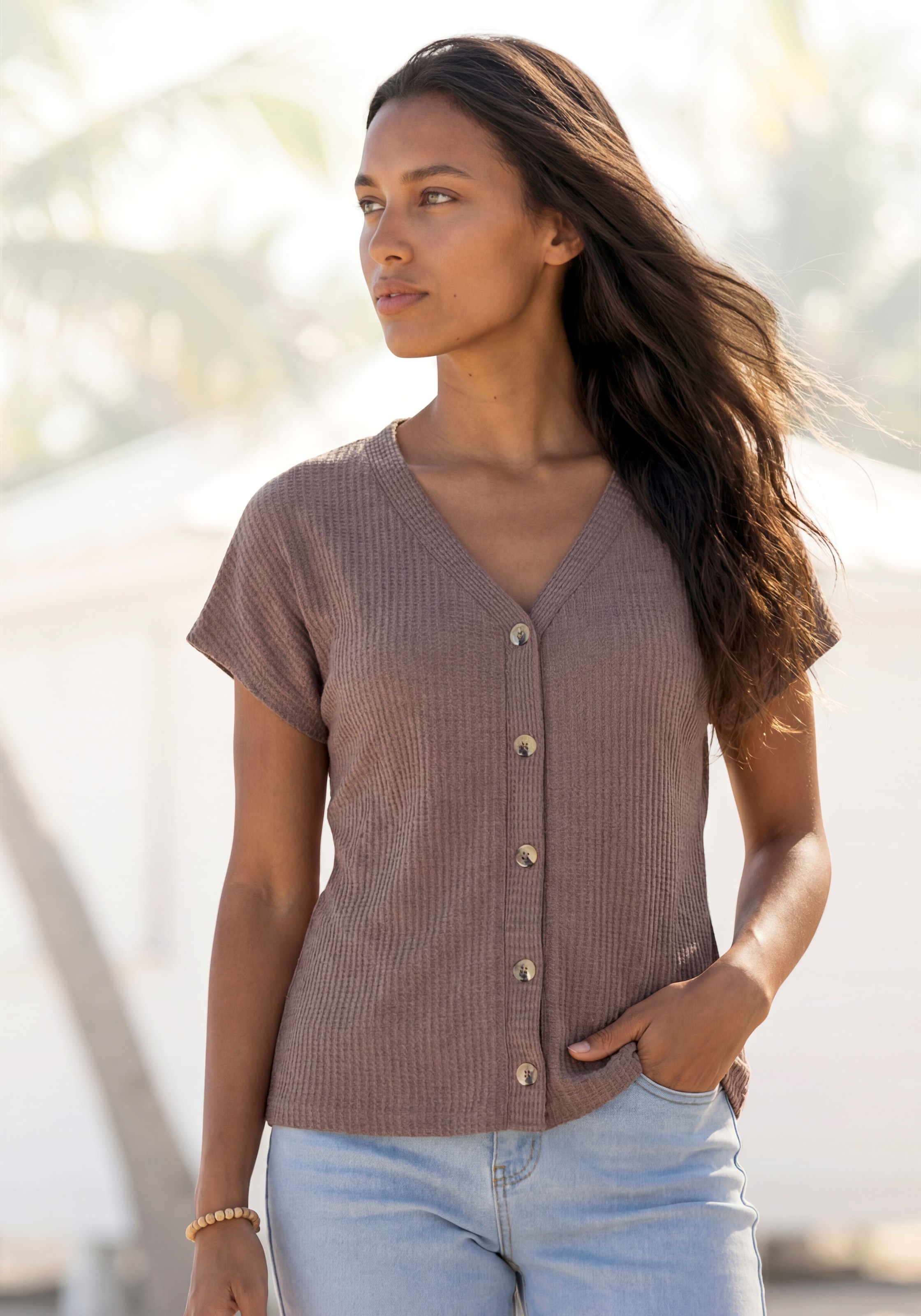 - Shirttop »mit Zierknöpfen in Hornoptik« 2er-Pack, aus weichem Viskose-StretchLASCANAAktueller Preisab 34,99 €Grundpreis17,49 €pro1 Stk