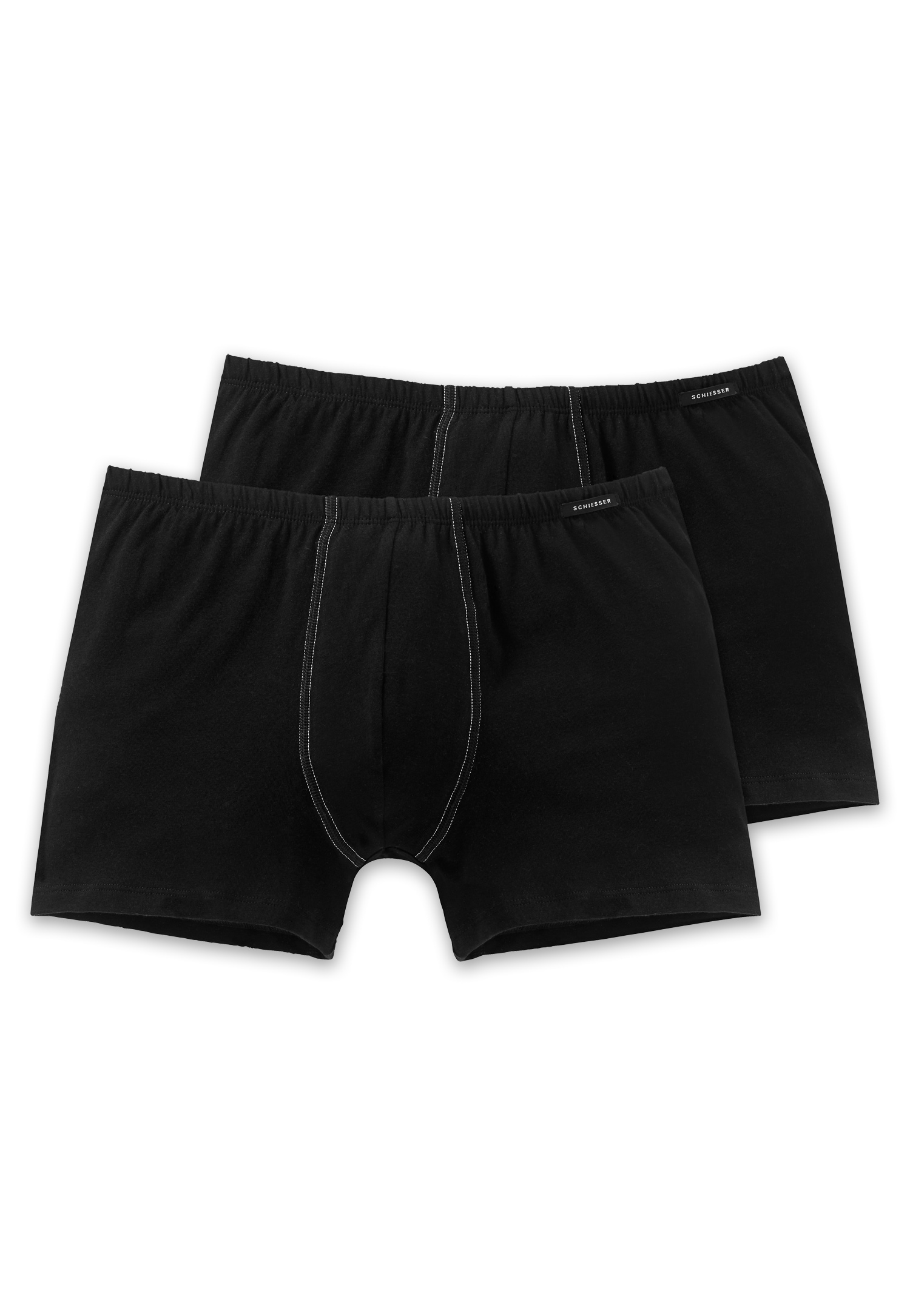 Im praktischen 2er-Pack kommen diese coolen Boxershorts von Schiesser zu dir nach Hause. Das elastische Modell besteht aus Baumwolle und Elasthan. Der weiche und schmale Bund sorgt für eine komfortable Passform ohne einzuschneiden. Kontrastfarbene Nähte an der Vorderseite setzen sich gekonnt vom restlichen Stoff ab und das kleine Schiesser-Logo am Bund vollendet das coole Design. Die Boxershorts von Schiesser sollte jeder Mann in seinem Kleiderschrank haben.