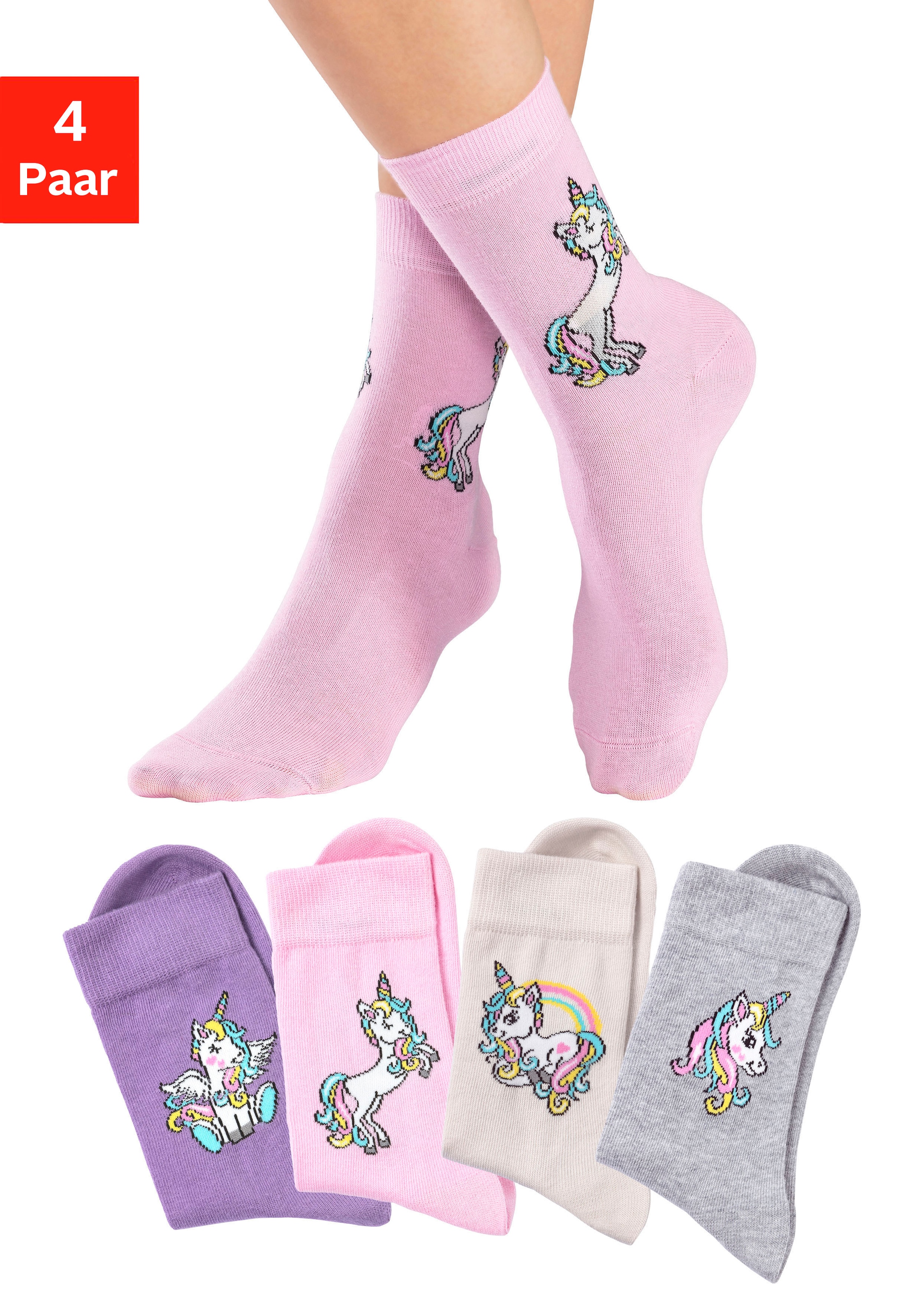H.I.S Basicsocken Packung, 4 Paar tlg. mit Einhorn Motiven