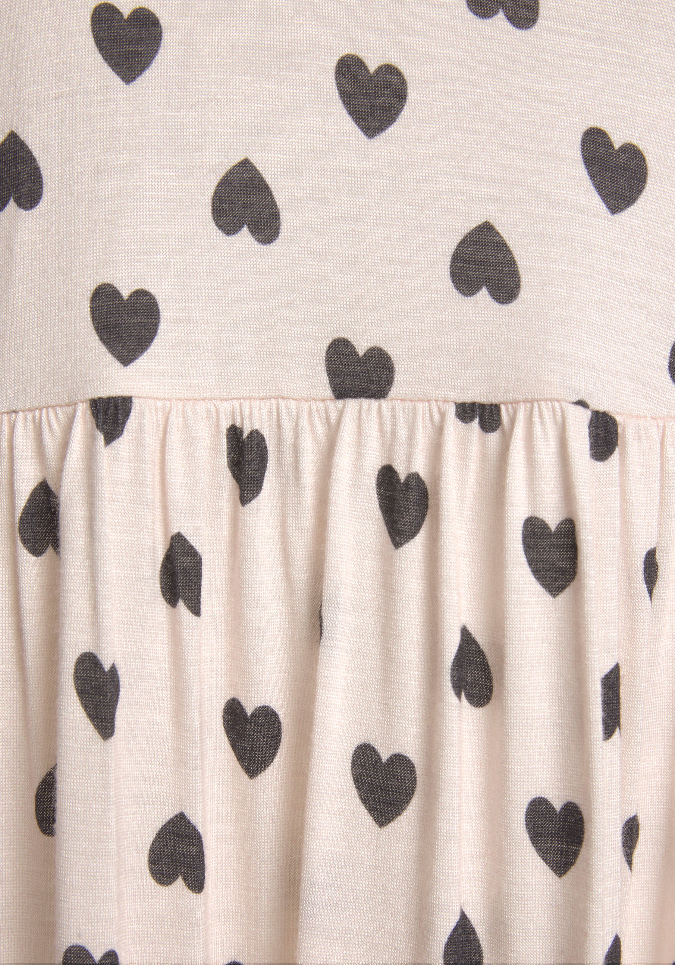 Nachthemd mit allover Print, Rundhalsausschnitt und gekräuselten Säumen. Leichte Raffung in der Taille. Angenehme Viskosequalität.