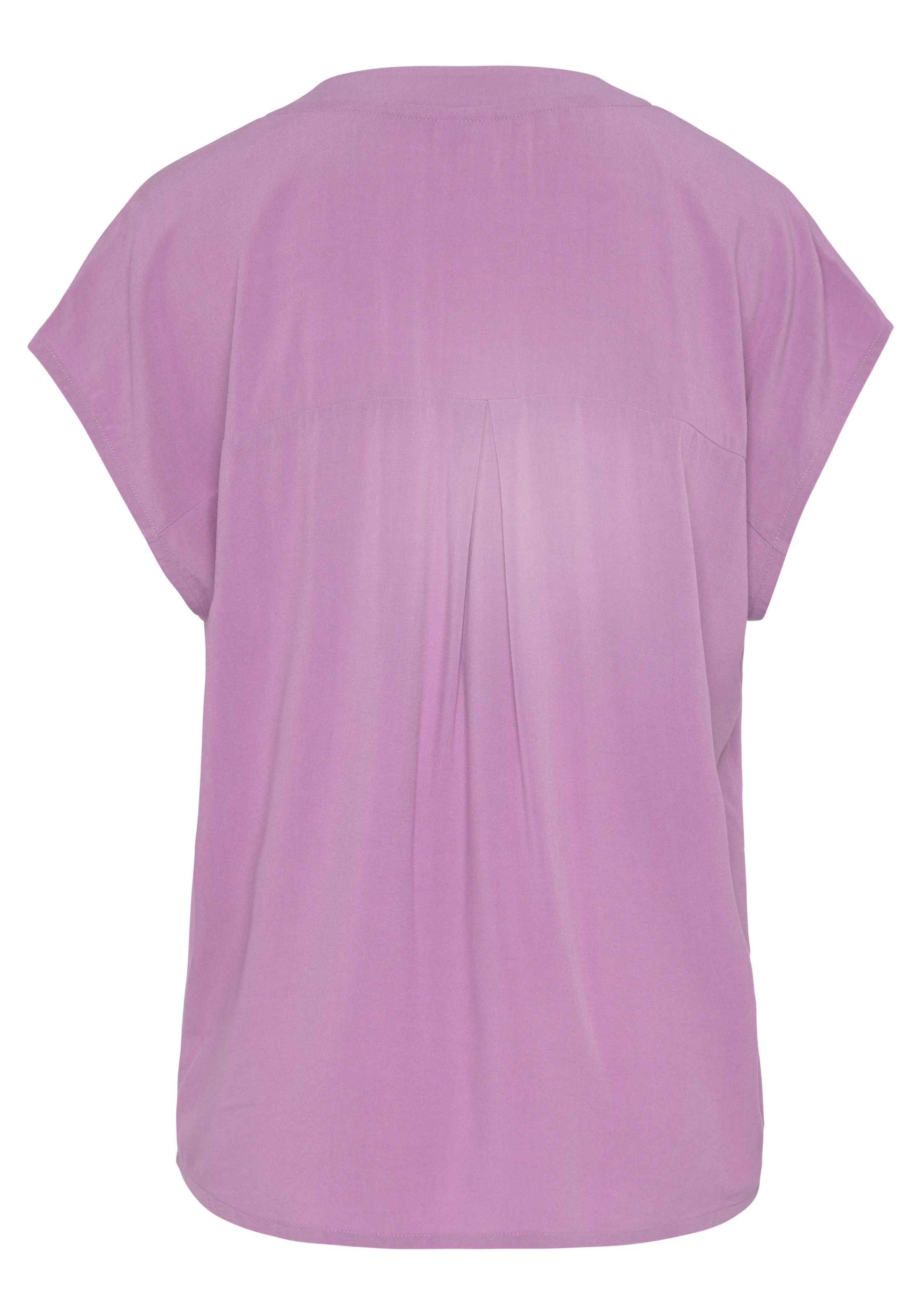 Bluse von Lascana. V-Ausschnitt mit 2 Knöpfen. Kurze Ärmel. Abgerundeter Saumabschluss. Länge ca. 62 cm. 100% Viskose aus verbesserter Rohstoffbeschaffung.
