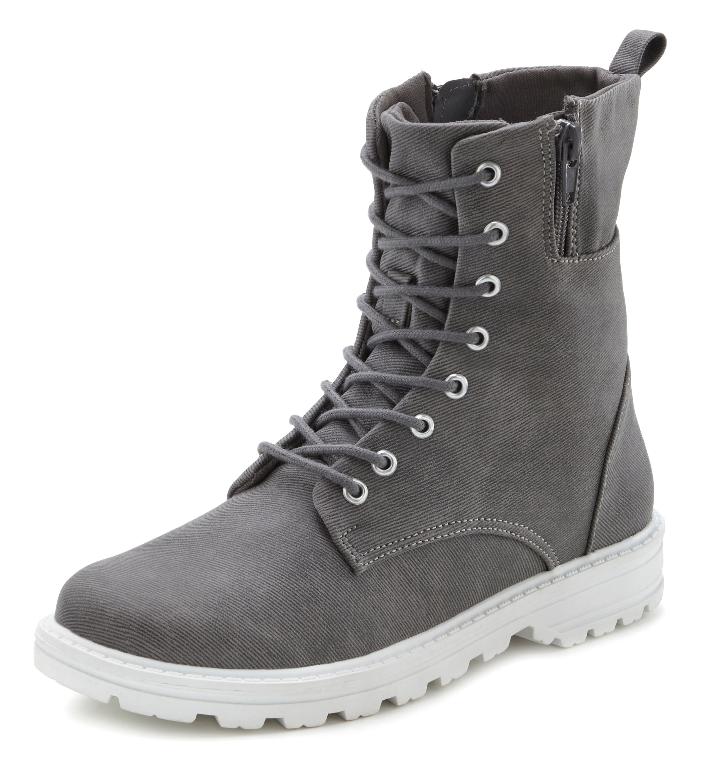 LASCANA Stiefelette zum Schnüren, modische Optik im Combat Look, Reißverschluss-Boots