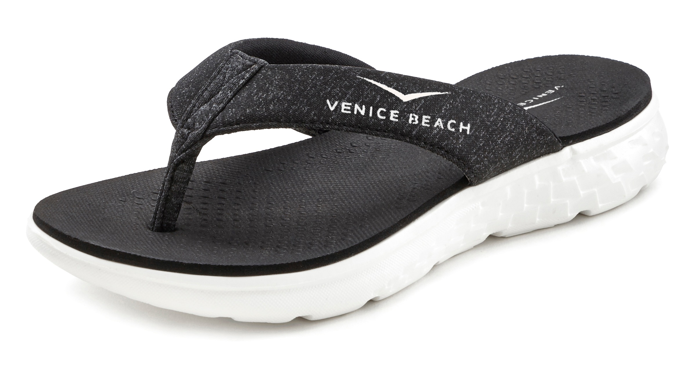 Zehentrenner mit wasserabweisender Sohle VEGAN von VENICE BEACH. Hervorragend geeignet für Strand und Pool. Obermaterial und Futter aus Textil. Decksohle und Laufsohle aus Synthetik.