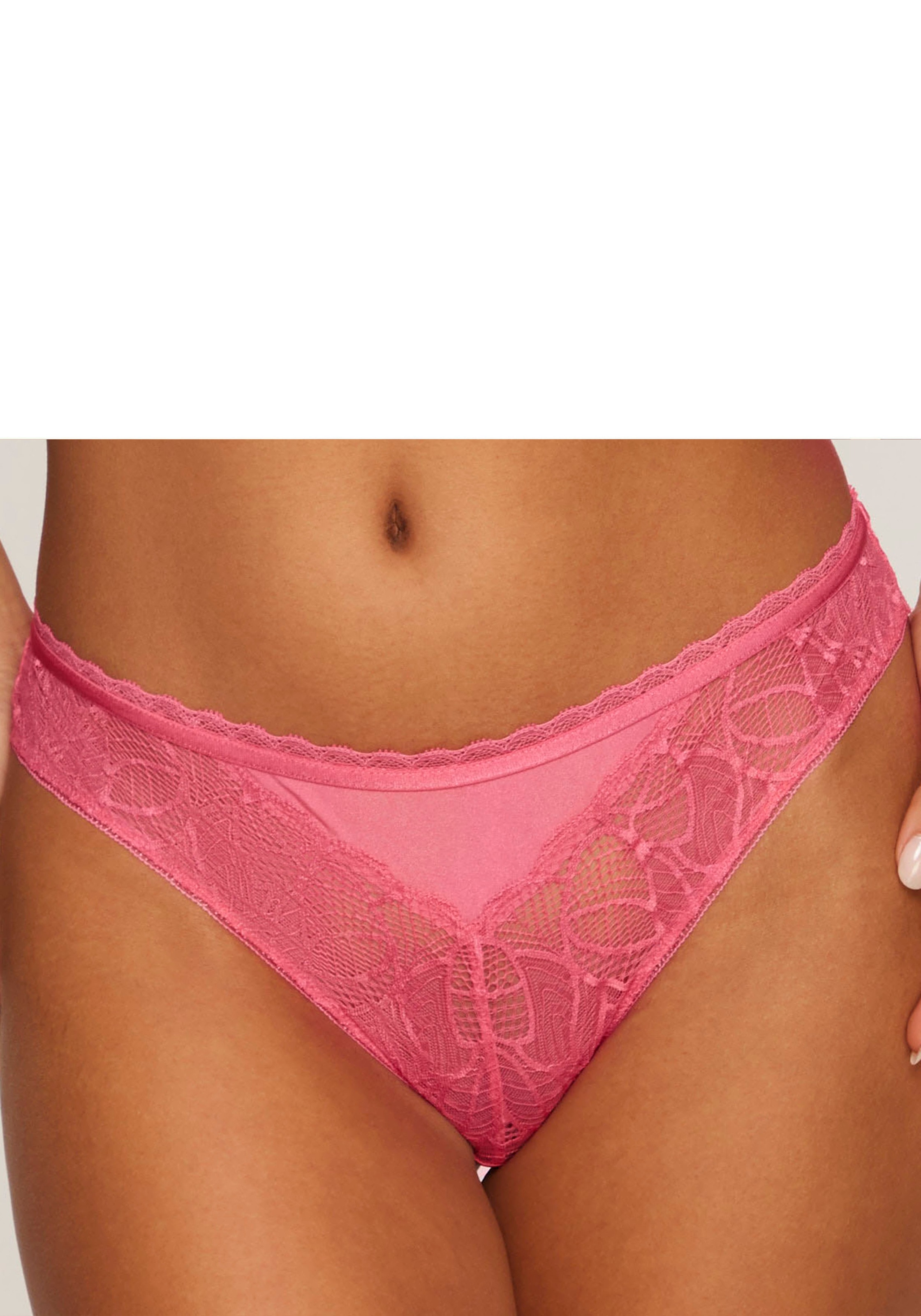 Tanga mit verführerischem Bändchen. Rundum aus feiner Spitze und Soft-Mesh in dezent transparenter Optik. Mit feiner Zierschleife und hübschem Perlenaccessoires in der vorderen Mitte. Mit eingearbeitetem Baumwollzwickel. Mit Liebe & Leidenschaft in Hamburg kreiert. Aus 87% Polyamid, 13% Elasthan.