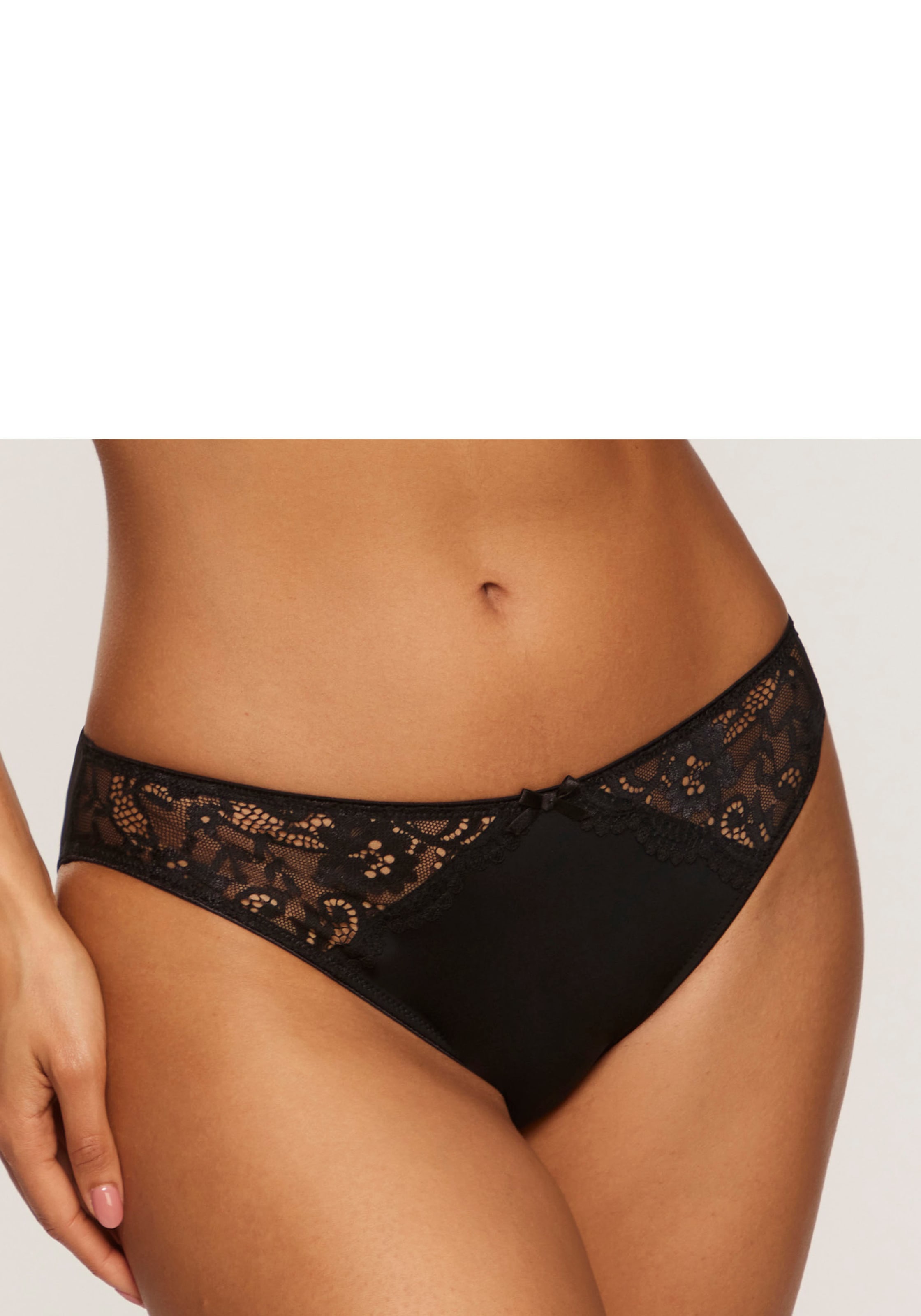 Femininer Slip in klassischer Schnittform. Aus weichem Microtouch-Material und Einsätzen aus feiner Jacquardspitze. Mit feiner Zierschleife in der vorderen Mitte. Mit eingearbeitetem Baumwollzwickel. Passender Minimizer-BH aus der gleichen Serie erhältlich. Obermaterial: 85% Polyamid, 15% Elasthan.