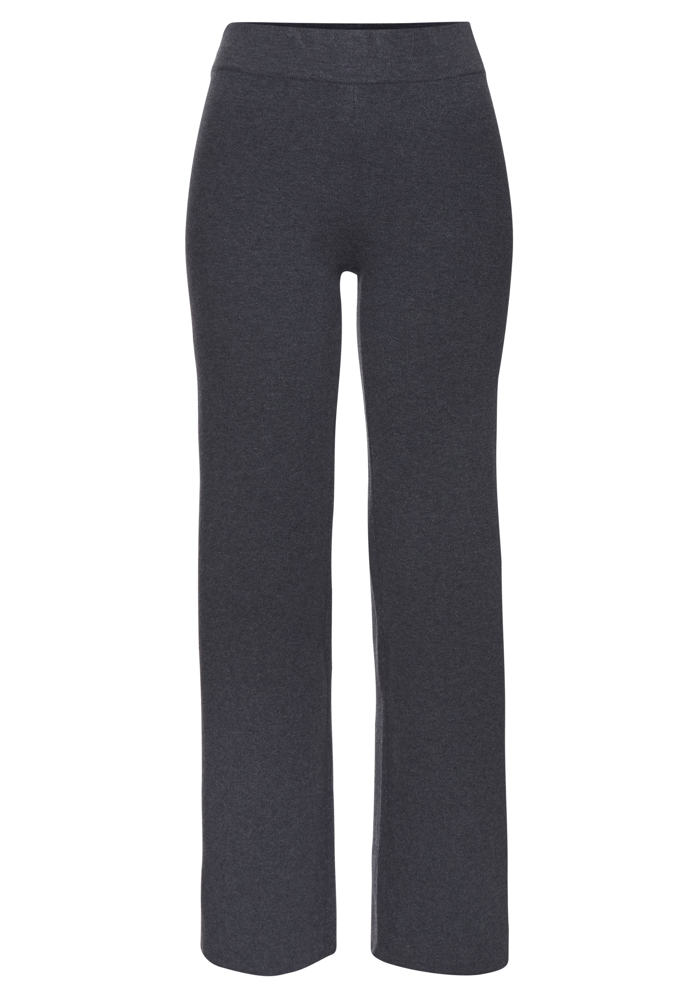 Weiche Strickhose von Elbsand. Mit eingestricktem Markenschriftzug entlang des linken Hosenbeins. Komfortabler Taillenbund mit Gummizug. Lockere Passform. Angenehm zu tragende Strickware mit hohem Viskose-Anteil.