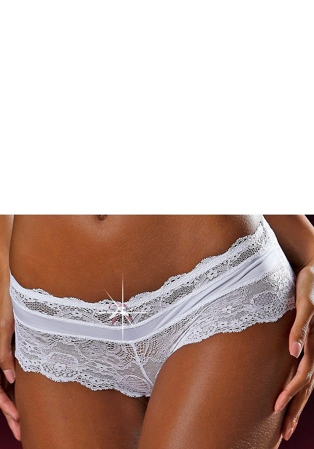 Panty aus elastischer Spitze. Mit Baumwollzwickel. Aus 90% Polyamid, 10% Elasthan.