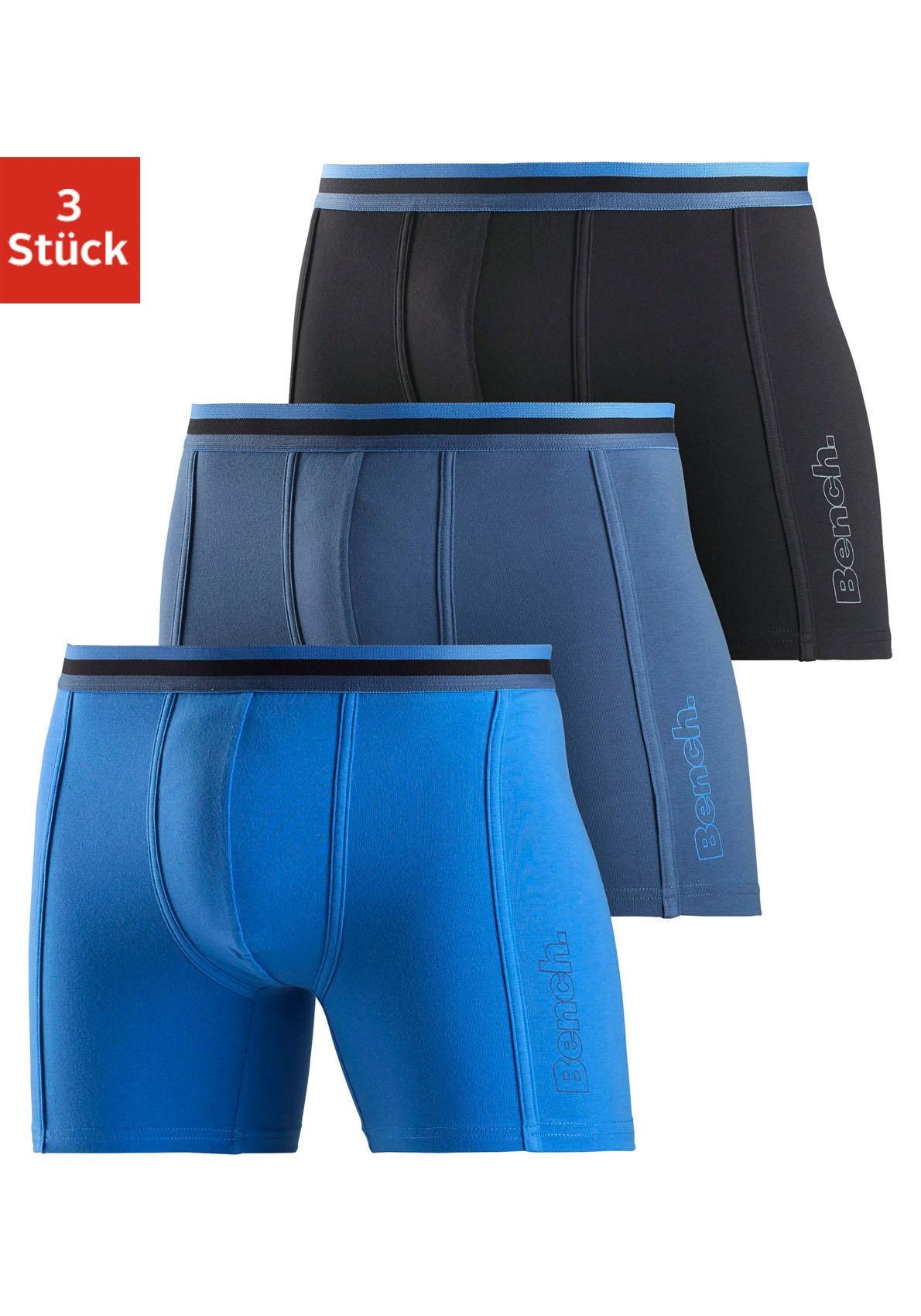 Bench. Langer Boxer Packung, 3 Stk. Unterhosen mit elastischem Bund und Logodruck auf dem Bein