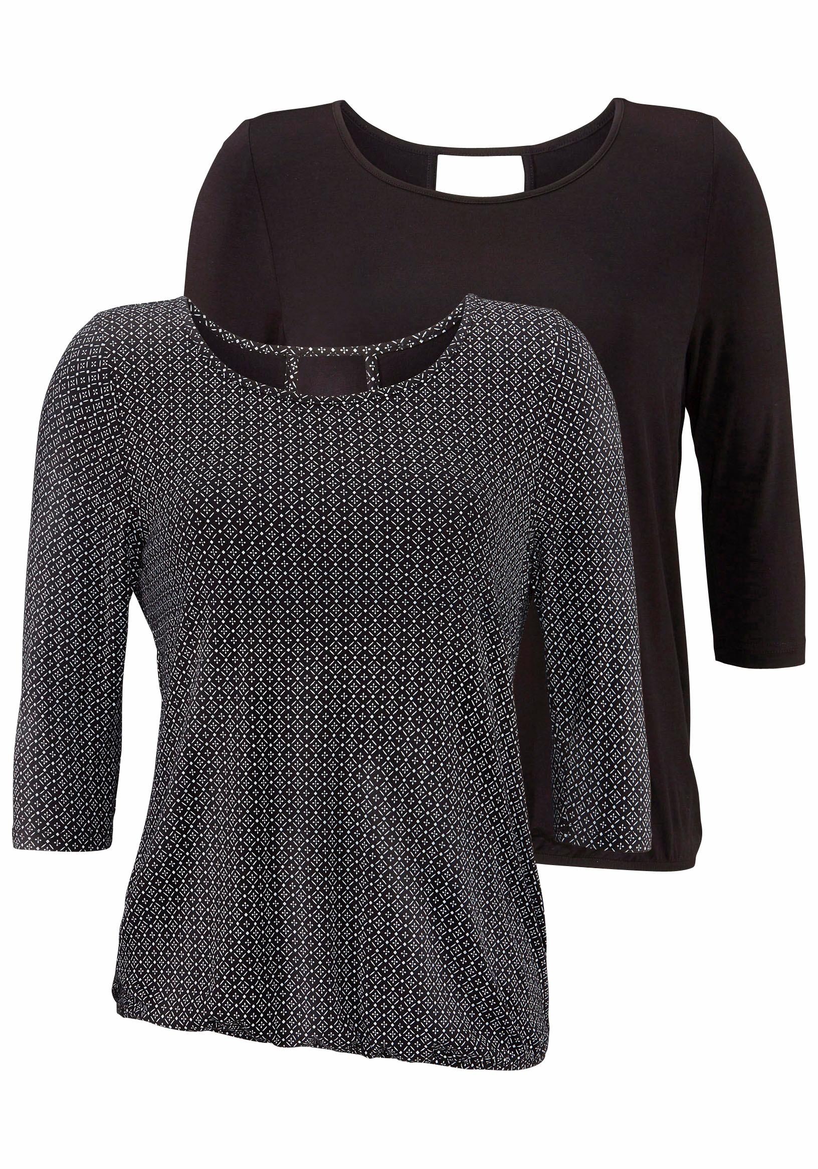 Lascana 3/4-Arm-Shirts im 2er-Pack. Mit Rundhalsausschnitt und V-förmiges Cut-Out im Nacken. Gummizug am Bund für eine lässige Passform. Aus weich fließender Viskose-Qualität.