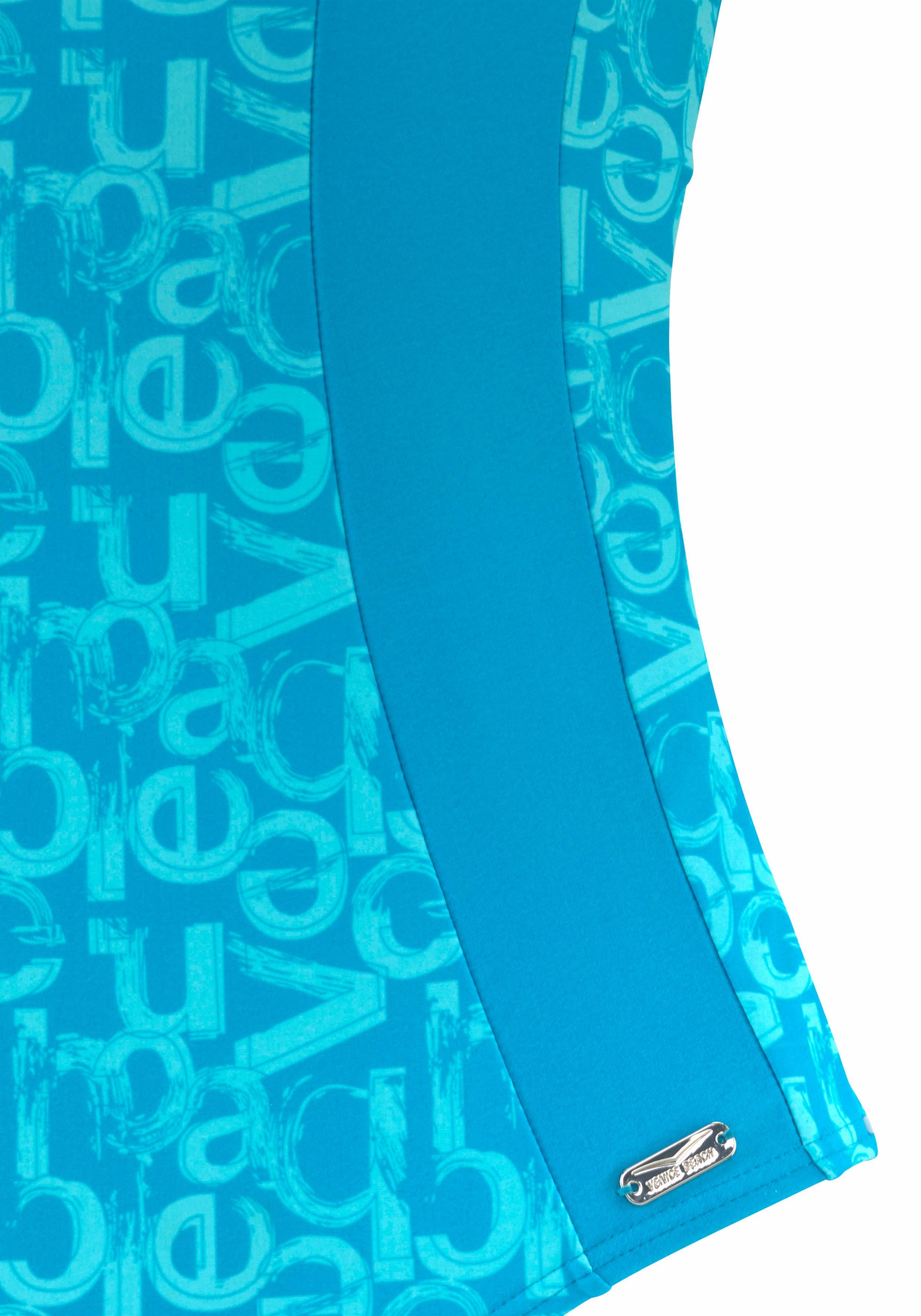 Badeanzug von VENICE BEACH mit modisch bedruckten Einsätzen. Mit Ringerrücken, Shaping-Einsatz und Unterbrustgummi vorn. Bis C-Cup geeignet.