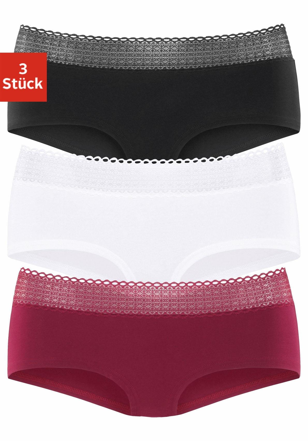 s.Oliver: Hipster im 3er-Pack. Mit weichem, graphischem Spitzenbündchen. Dehnbare Beinausschnitte und elastisches Material mit Wohlfühlfaktor.