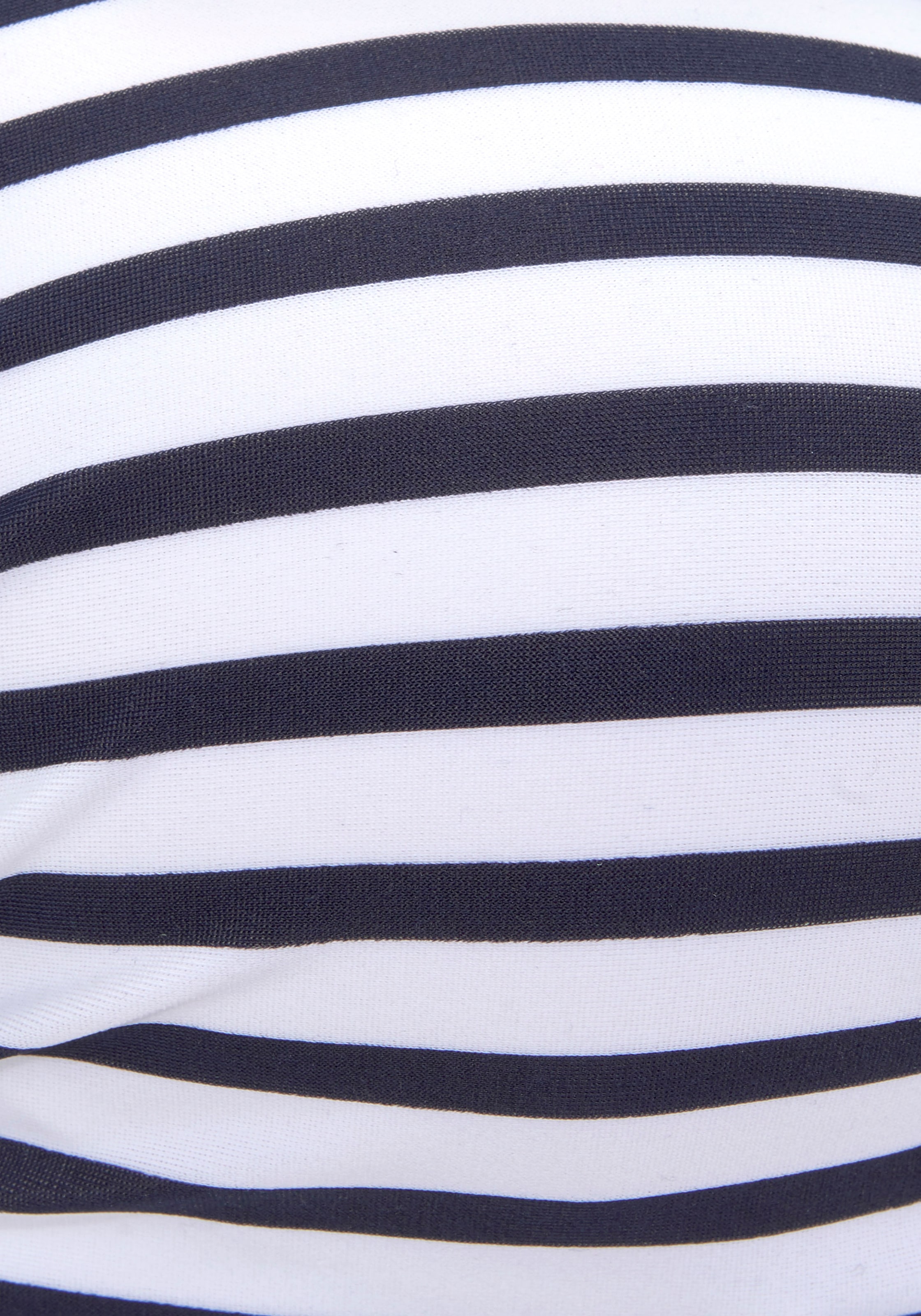 Wattierte Cups und seitliche Stäbchen. Cup A + B mit herausnehmbaren Kissen. Abnehmbare Träger. In 2 Designs: mit Blumenprint oder komplett im Streifenlook.