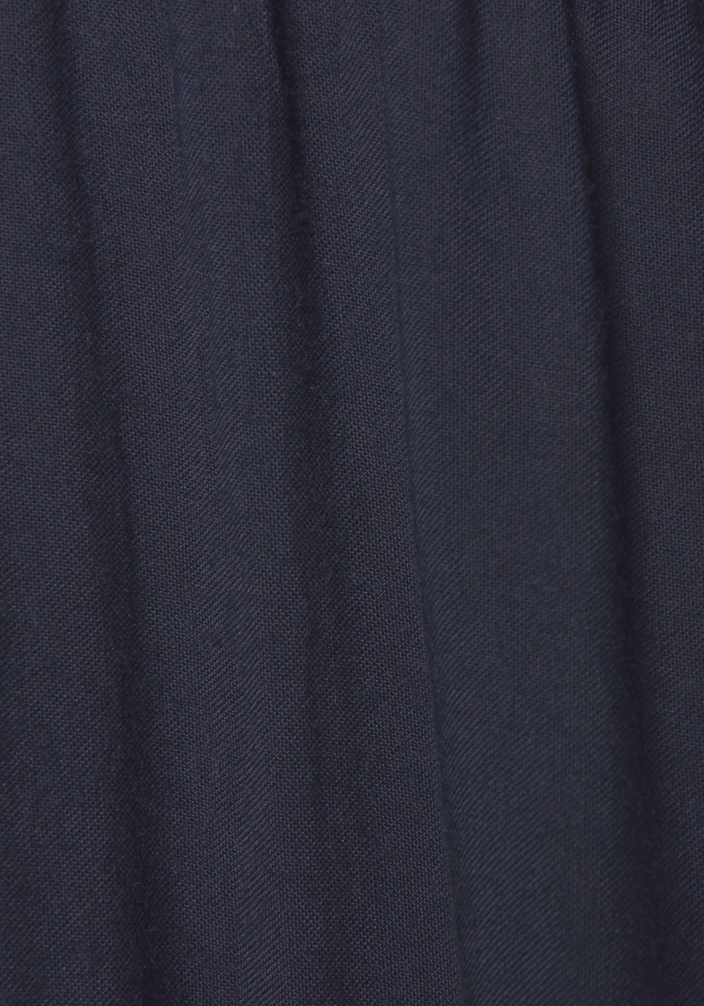 In schwingender A-Linie mit eingesetztem Spitzenband ober- und unterhalb der Brust. Lange Ärmel mit Volantabschluss. Zum Saum hin weit ausgestellt und abgestuft. Länge ca. 86 cm. Aus 100% gewebter Viskose.