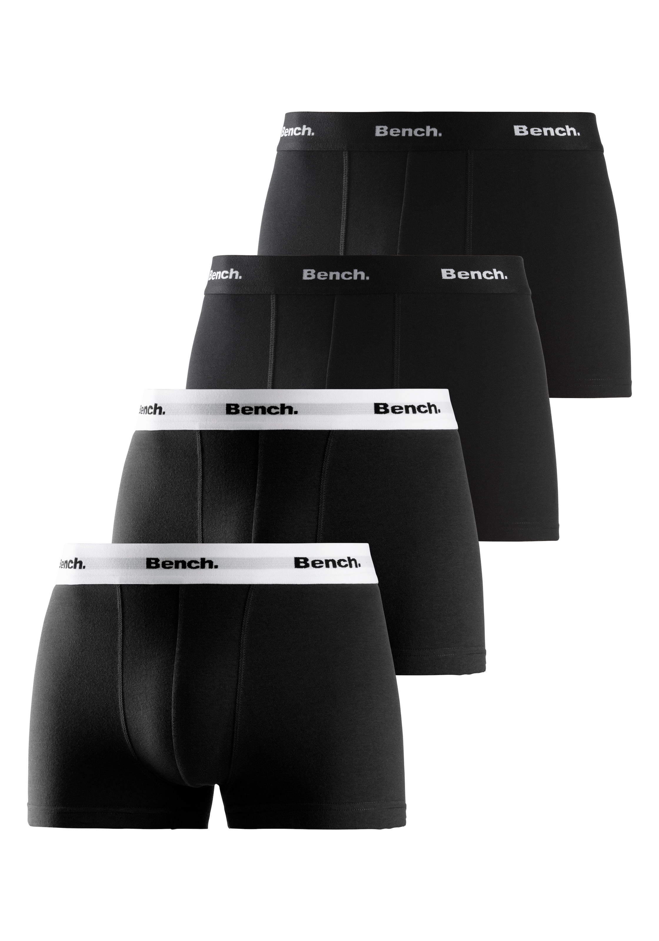 BENCH Herren Boxer im 4er Pack. Mit weißem und schwarzem Logo Webbund. Obermaterial: 95% Baumwolle, 5% Elasthan