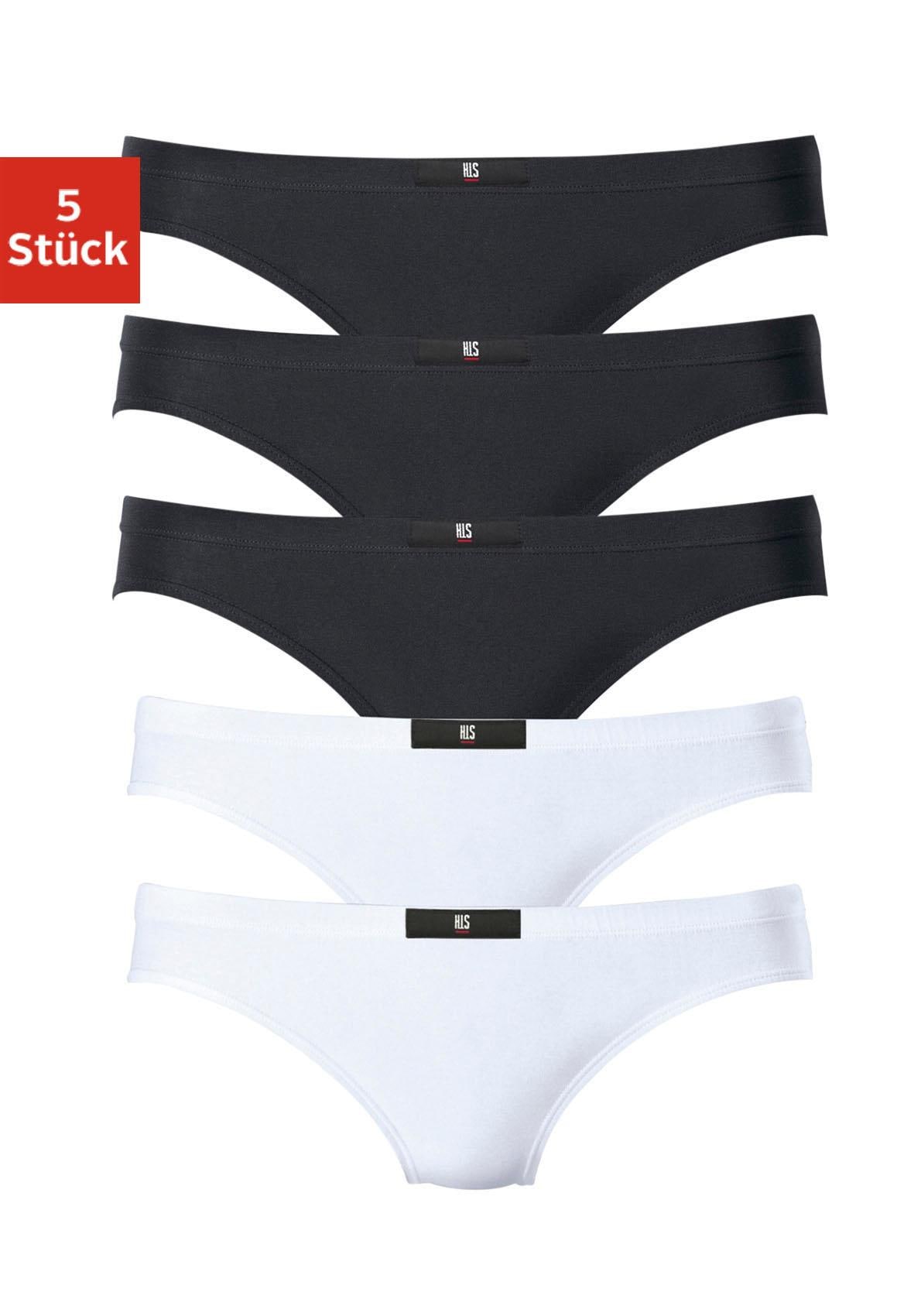 H.I.S Strings im 5er Pack. Mit elastischem Bündchen und aufgenähtem Logo-Label vorn. Aus weicher Baumwoll-Stretch-Qualität.