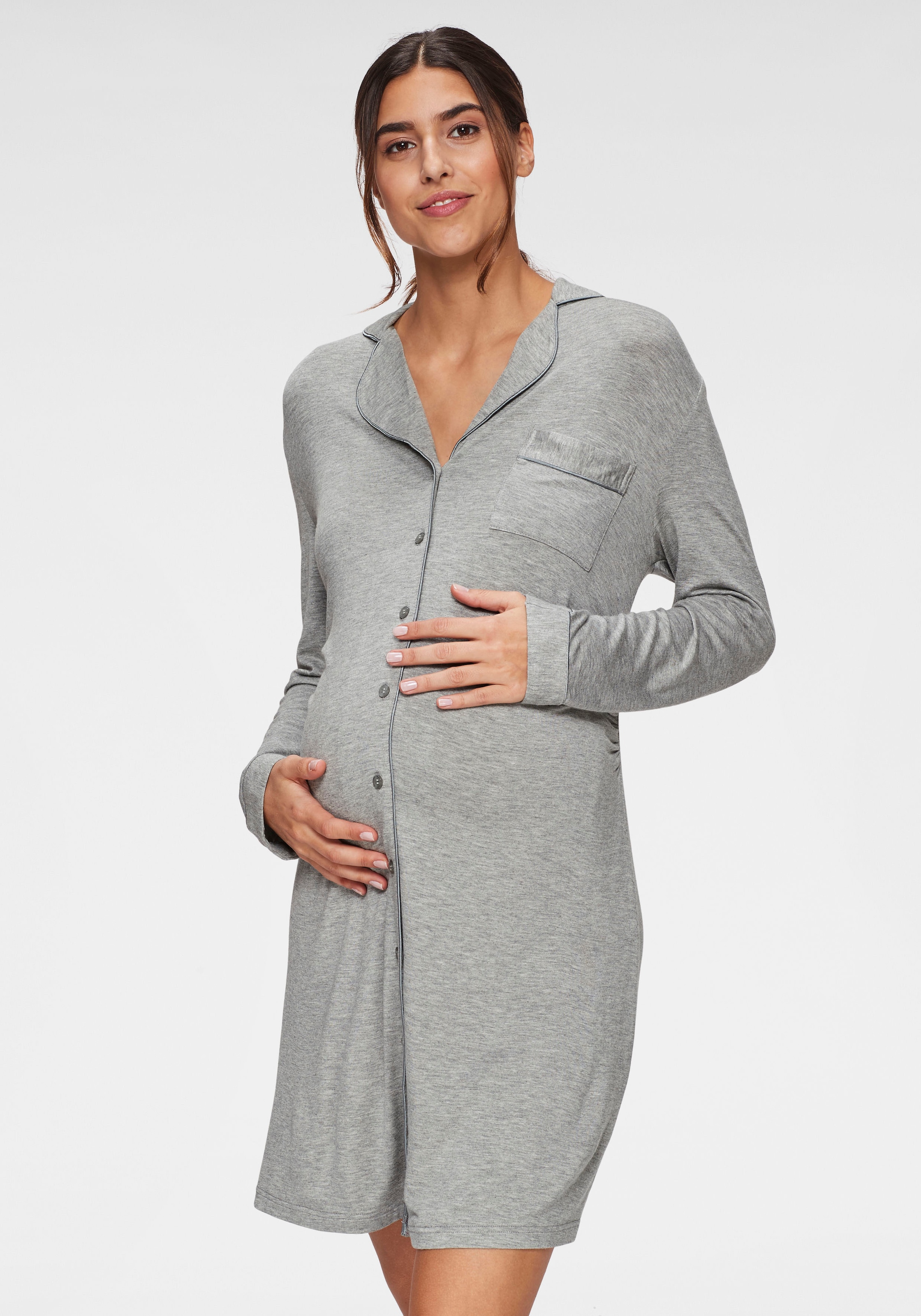 Bequemes Umstandsnachthemd vom Lascana. Klassischer Kragen, lange Ärmel und praktische durchgehende Knopfleiste. Gute Passform durch Raffungen an der Seitennaht. Passt bis zum Ende der Schwangerschaft. Weiche, elastische Viskose.