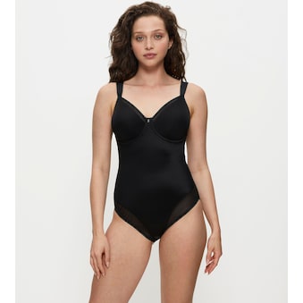 Body aus transparenter, elastischer Spitze von Jette, kreiert von der Designerin Jette Joop. Glitzeraccessoire in der vorderen Mitte. Erotische Dessous. Reizvolle Dessous. Reizwäsche. Verführerische Dessous. Spitzen-Dessous. Romantische Dessous. Verspielte Dessous. Aus 90% Polyamid, 10% Elasthan.