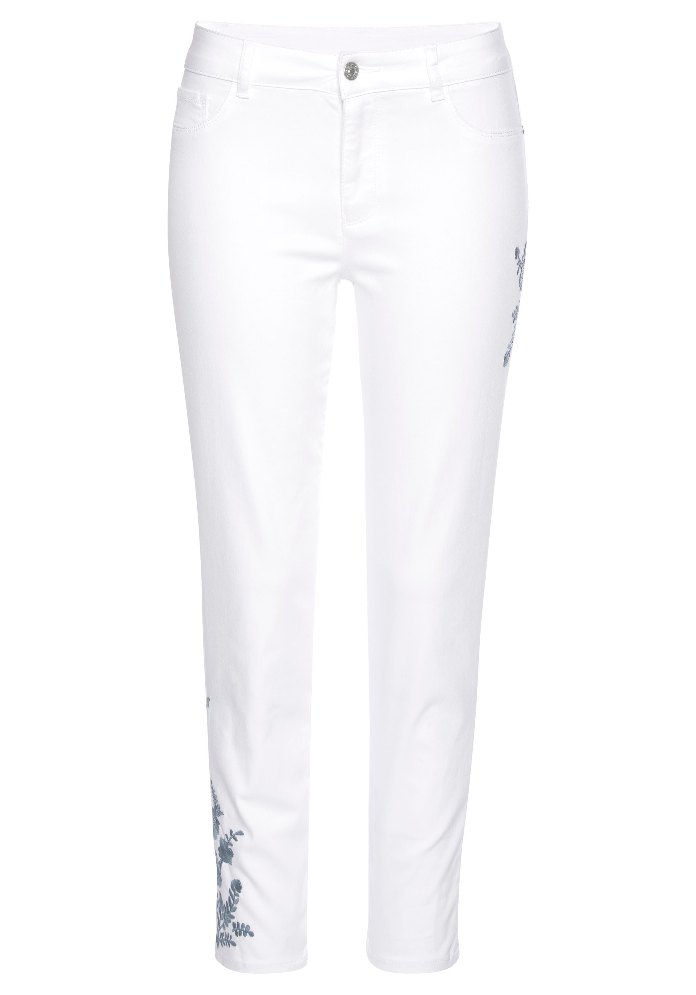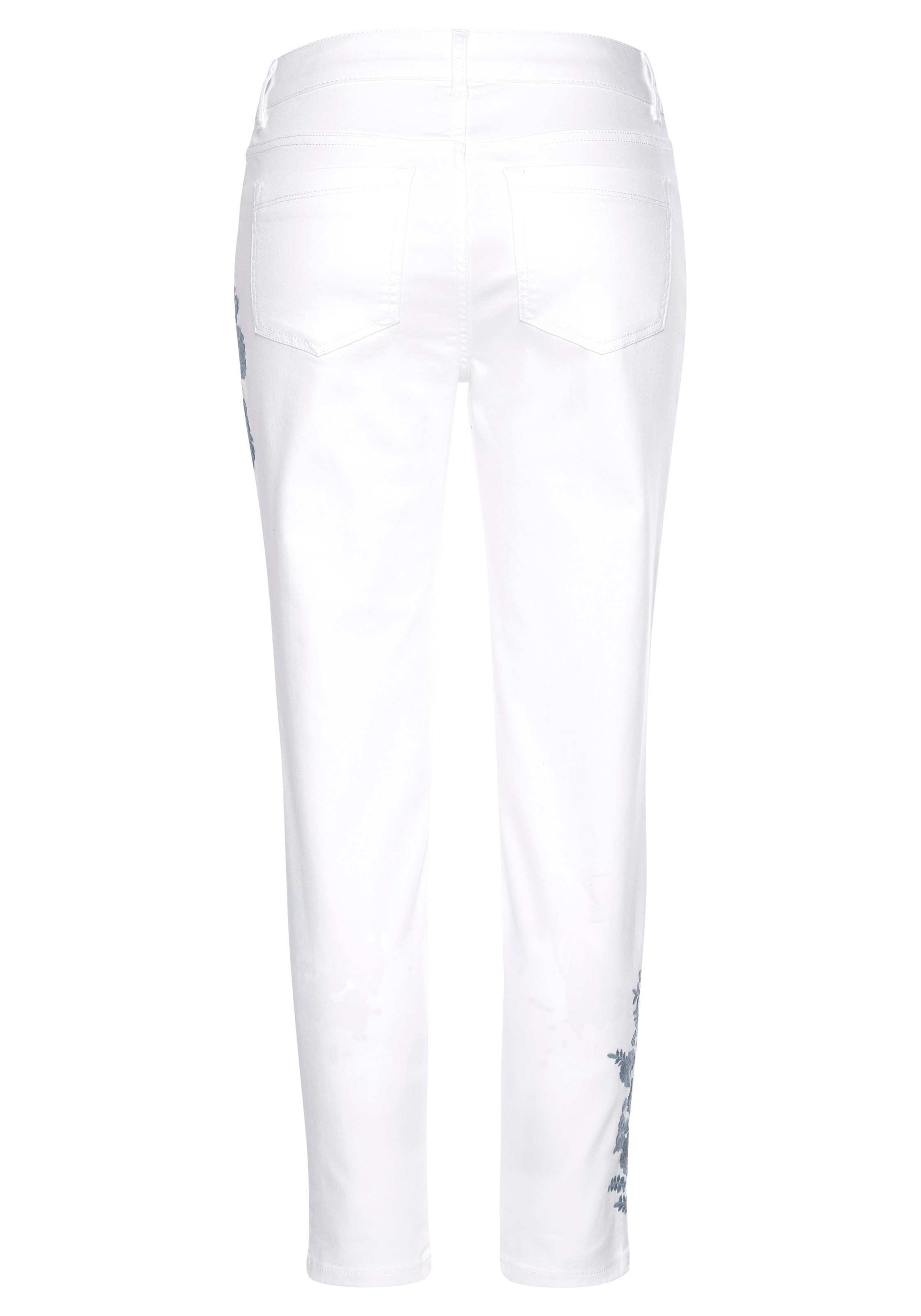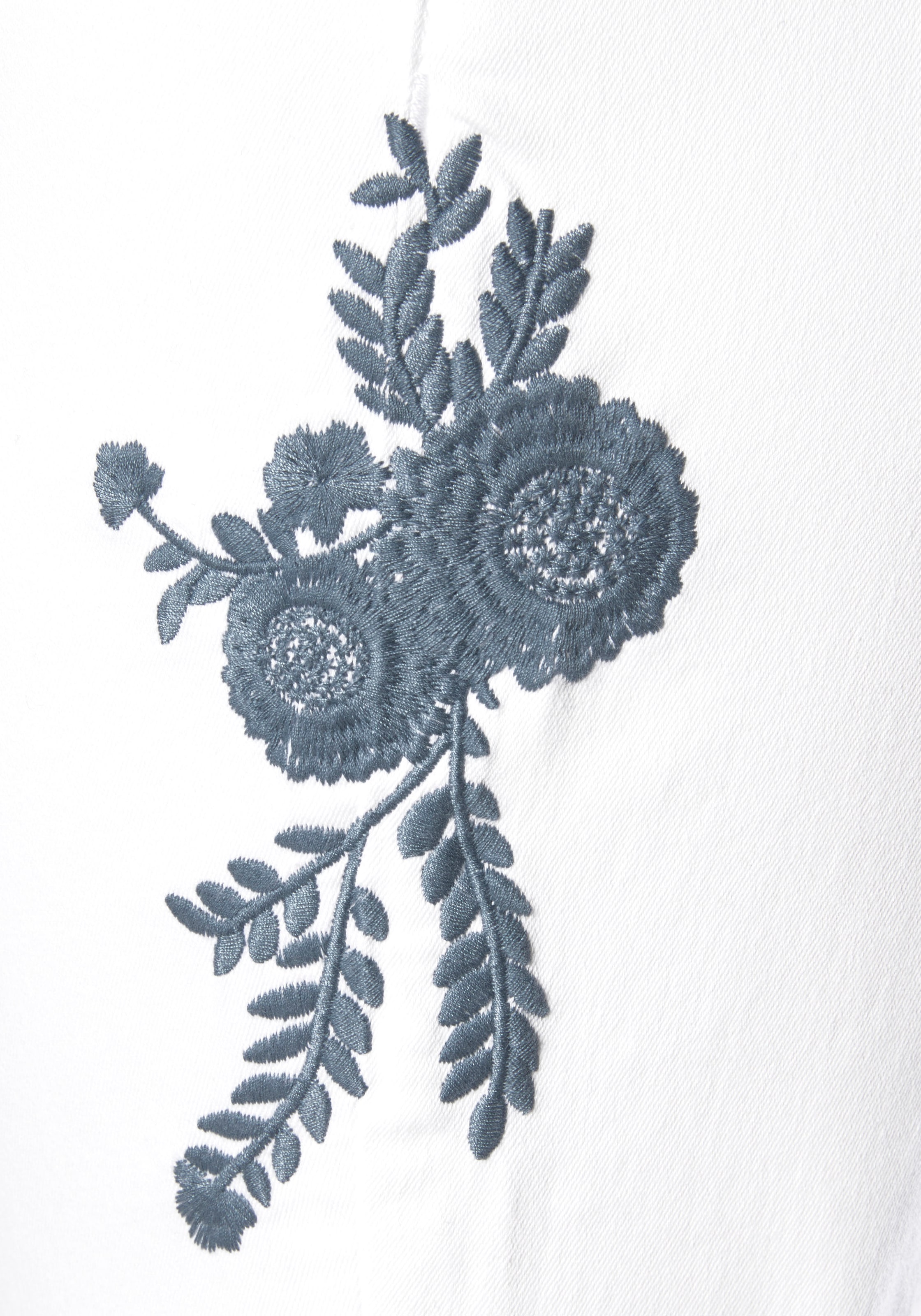 Mit Stickerei oben auf einem Bein und unten auf dem anderen. Im Five-Pocket-Style mit Ziertaschendetails. Innenbeinlänge ca. XX cm. Aus 70% Baumwolle (unterstützt Cotton made in Africa), 27% Polyester, 3% Elasthan.