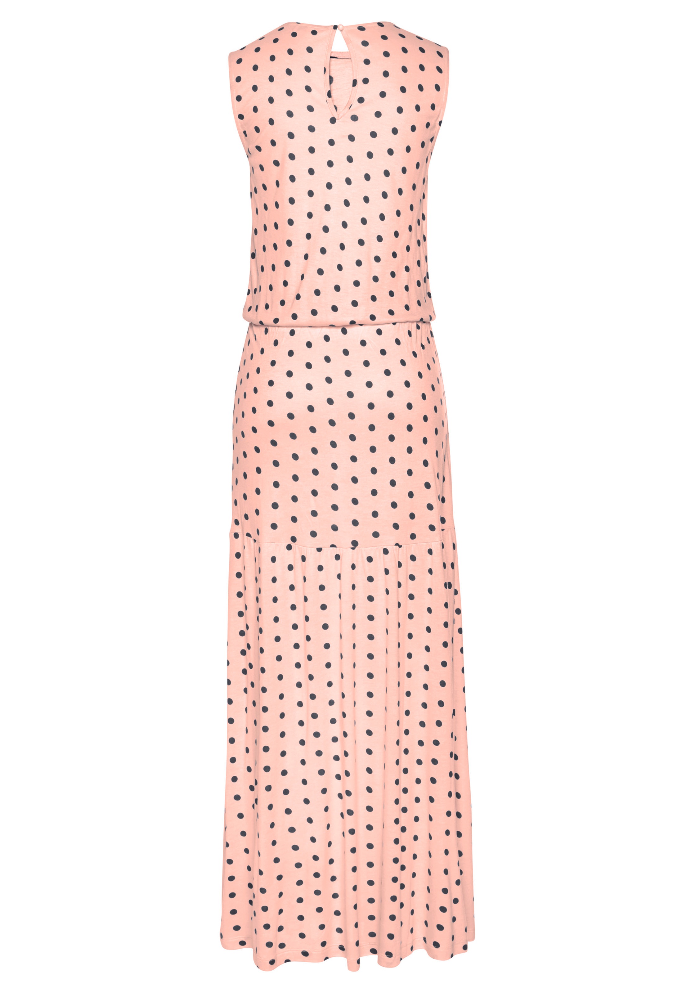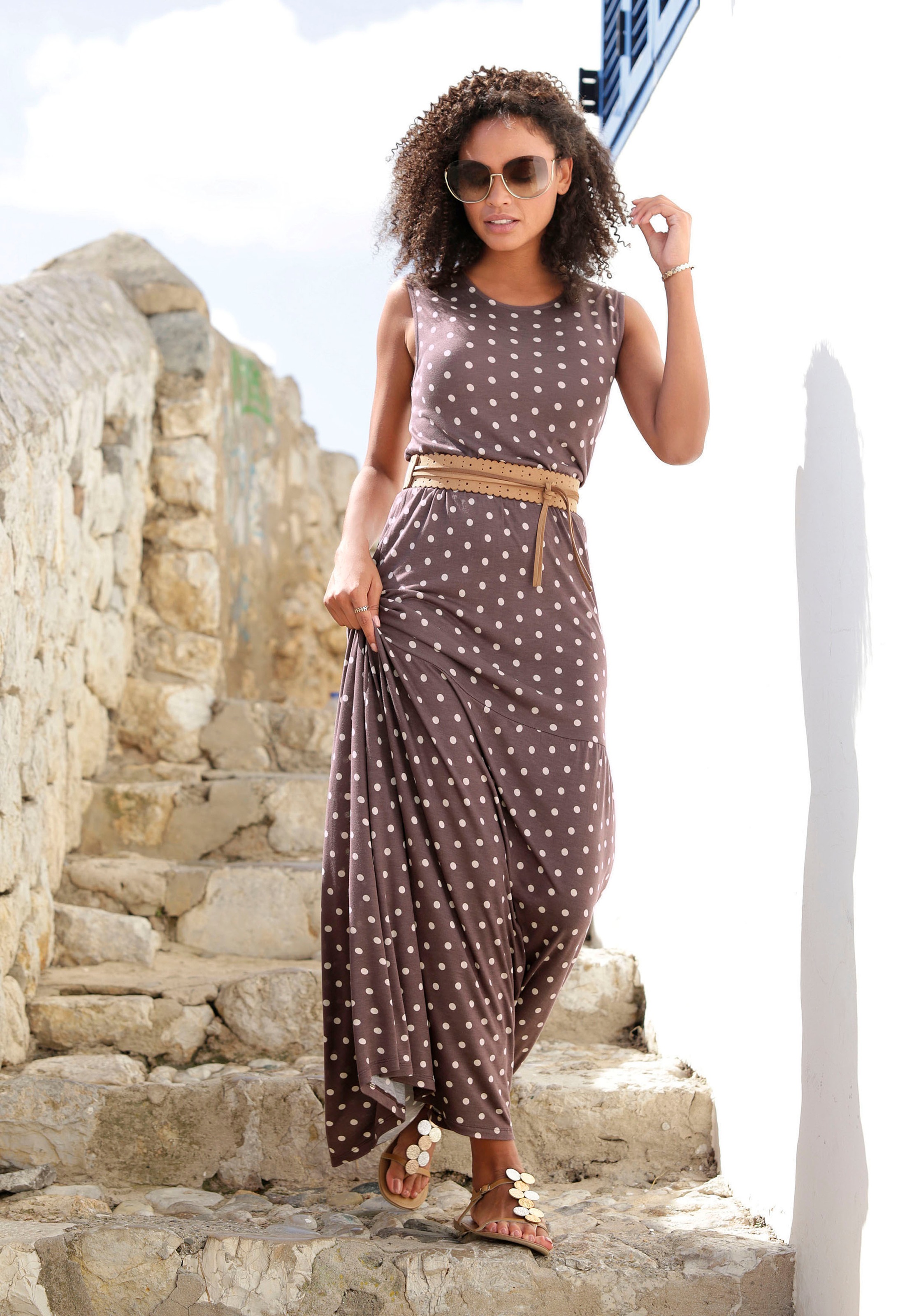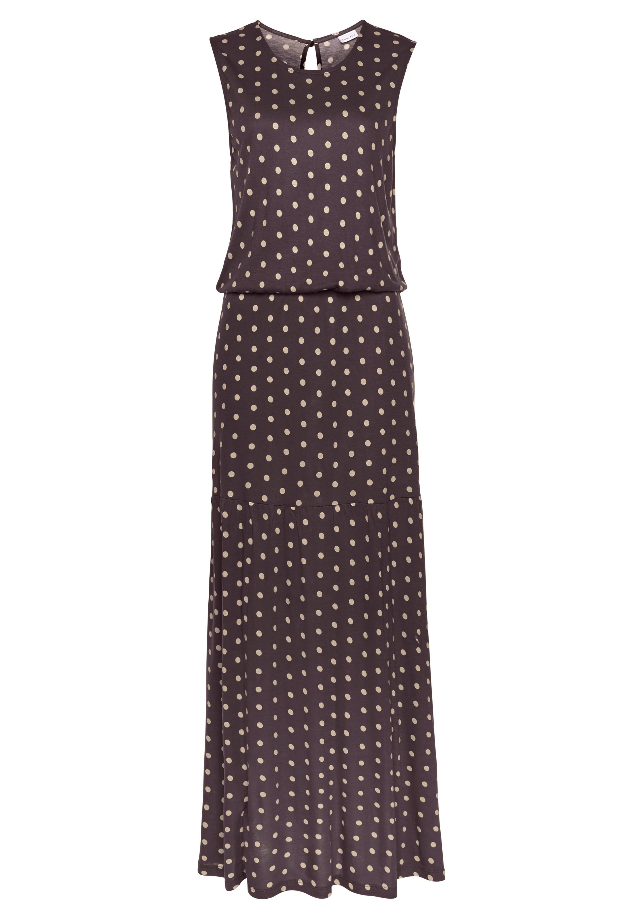 Maxikleid von Lascana im Punktdesign, jedes Teil ein Unikat. Runder Ausschnitt, im Nacken mit Schlitz und Knopfverschluss. Gummizug in Hüfthöhe. Langes, weites Rockteil. Länge ca. xx cm. Aus 100% Viskose.