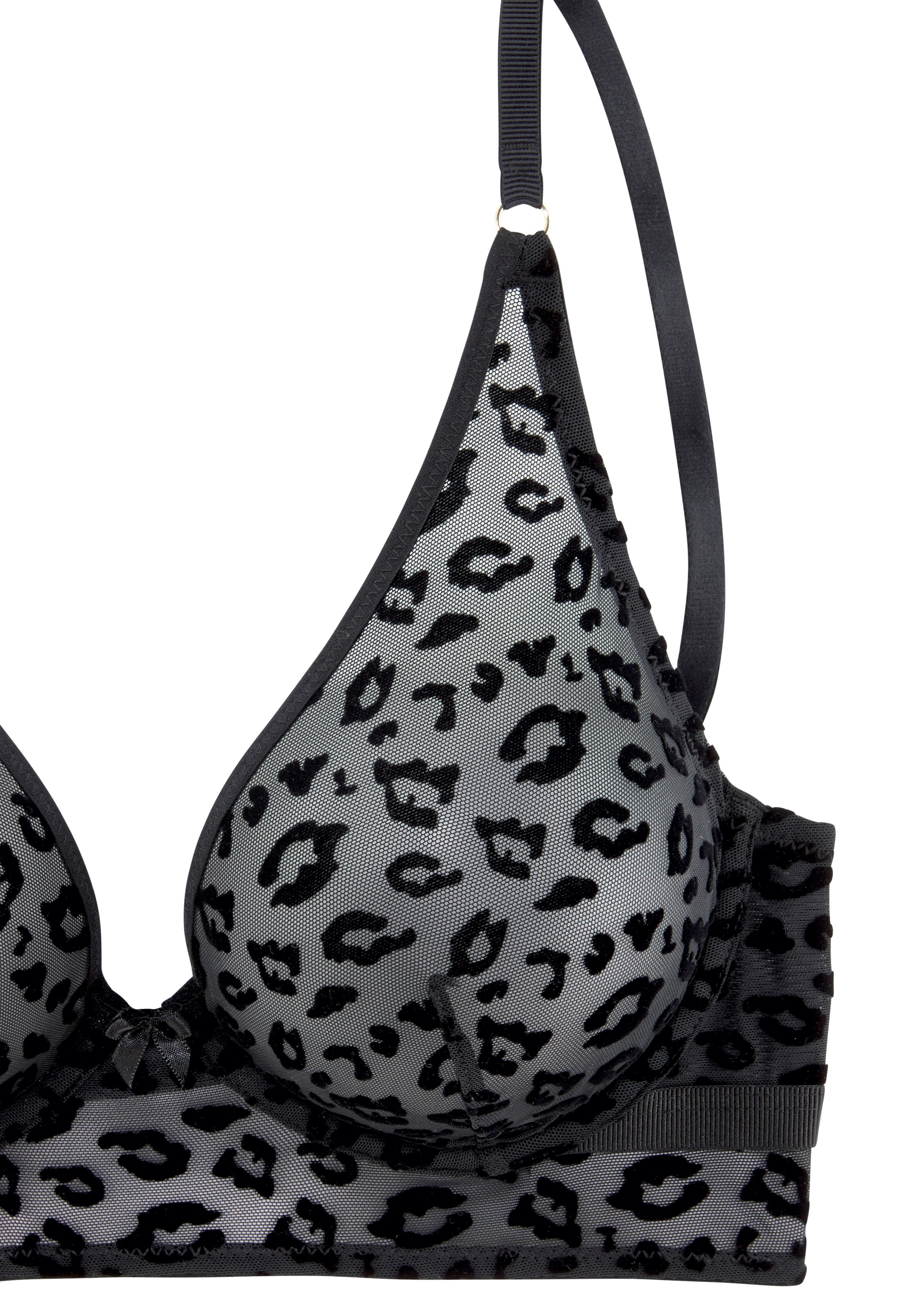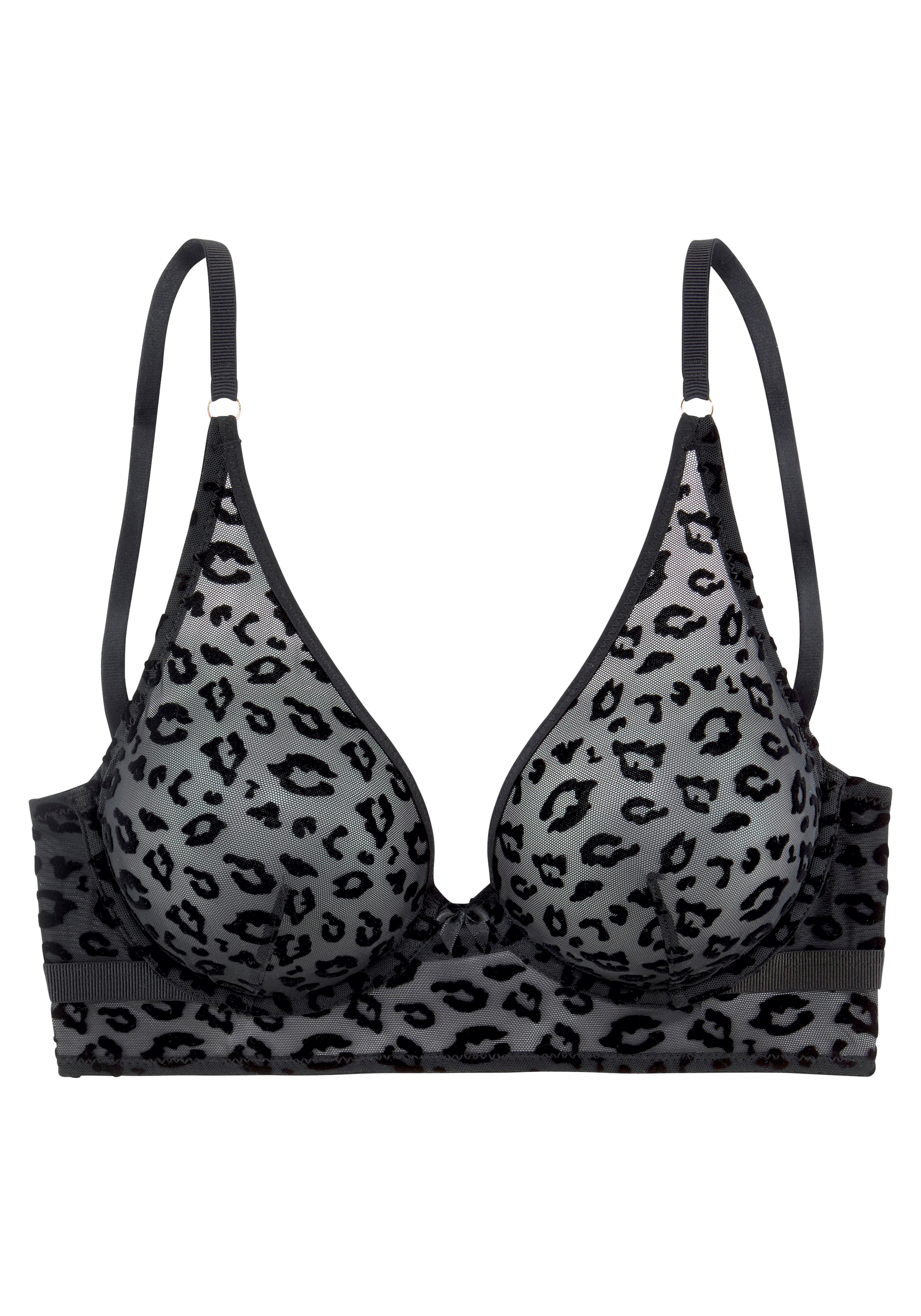 Verführerischer Bügel-BH von Petite Fleur Gold im Leo-Design. Elastisches Brustgummi für einen sicheren Halt. Mit feiner Zierschleife in der vorderen Mitte. Passende High-Waist-Panty aus der gleichen Serie erhältlich. Träger und Rückenverschluss sind verstellbar. Aus 88% Polyamid, 12% Elasthan.