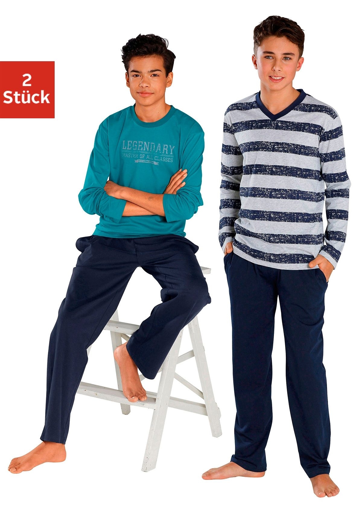 - Pyjama »mit Streifen und Print« 2 Stück, 4 Stk. tlg., in langer Formle jogger®Aktueller Preisab 29,99 €Grundpreis14,99 €pro1 Stk