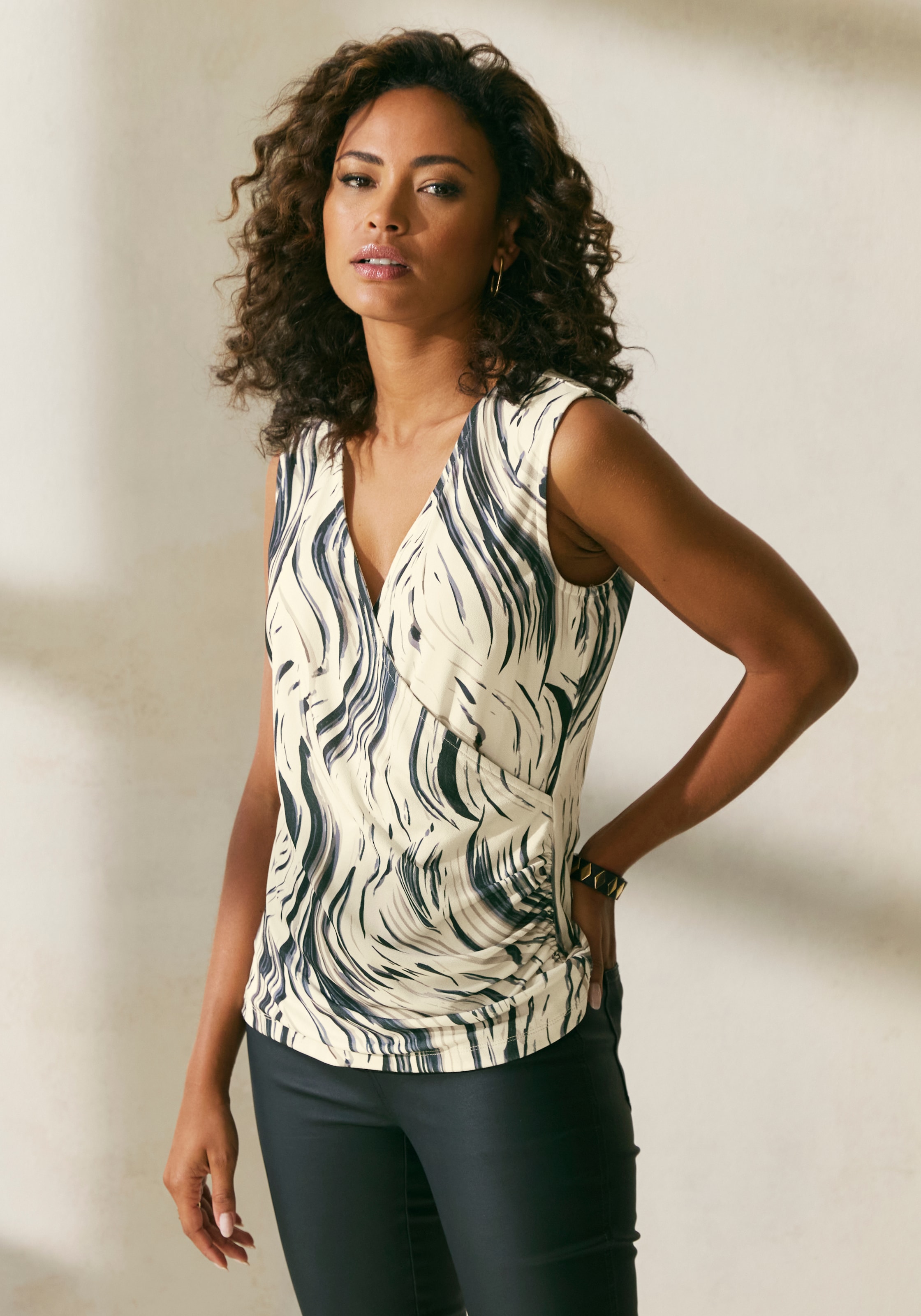 - Tanktop, in Wickeloptik, Blusentop mit Alloverdruck und seitlicher RaffungLASCANAAktueller Preisab 29,99 €